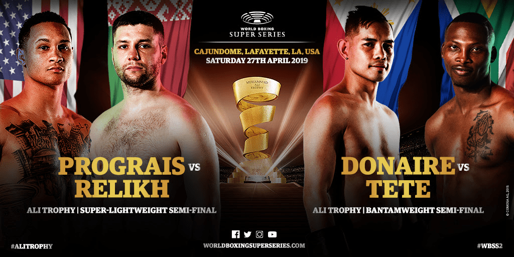 Prograis-Relikh & Donaire-Tete WBSS Semi-Finals Confirmed for Lafayette Regis Prograis & Kiryl Relikh and Nonito Donaire & Zolani Tete continue their pursuit for the Ali Trophy on April 27 at the Cajundome in Lafayette, Louisiana, USA. Tickets on sale next Friday. The sensational doubleheader opens the semi-final stage of the World Boxing Super Series. American … Continue reading Prograis-Relikh & Donaire-Tete WBSS Semi-Finals Confirmed for Lafayette