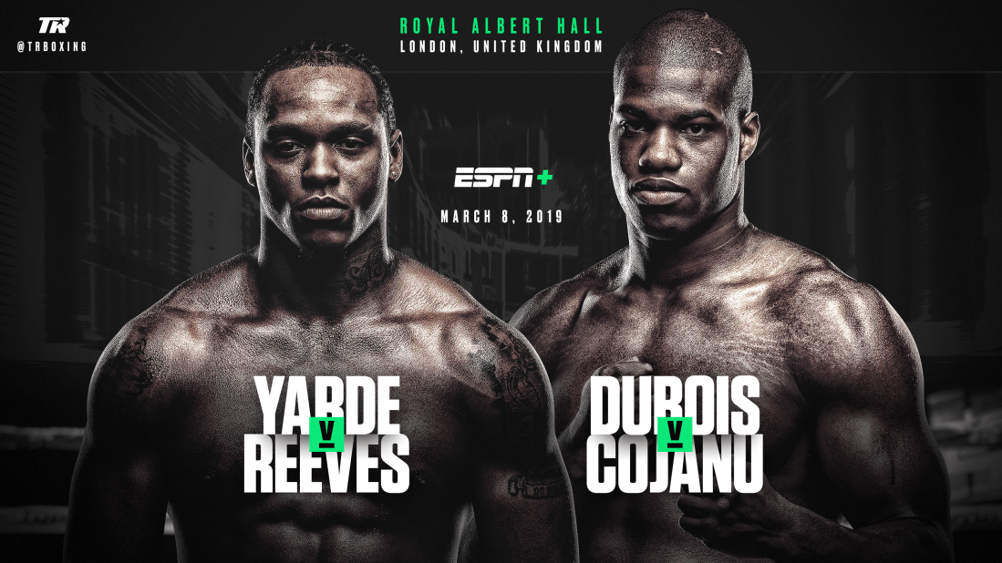 Light Heavyweight Destroyer Anthony Yarde and Heavyweight Sensation Daniel Dubois Return to ESPN+ Two of the biggest punchers in British boxing — light heavyweight Anthony Yarde and heavyweight Daniel Dubois — are ready to put on a Friday afternoon show for American fight fans. In the main event, Yarde will defend his WBO Intercontinental belt … Continue reading Light Heavyweight Destroyer Anthony Yarde and Heavyweight Sensation Daniel Dubois Return to ESPN+