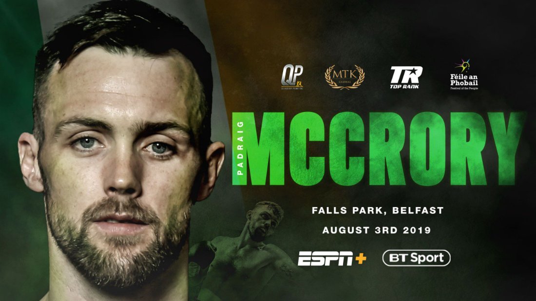 Popular Poddy Powers on to Huge Féile Bill Fast-rising super-middleweight Padraig McCrory is the latest fighter announced on the colossal Michael Conlan vs. Vladimir Nikitin bill at Féile an Phobail on August 3. Atop a quickly-developing bill, Conlan renews his rivalry with fellow Olympian Nikitin on a special #MTKFightNight in Belfast’s Falls Park live on … Continue reading Popular Poddy Powers on to Huge Féile Bill