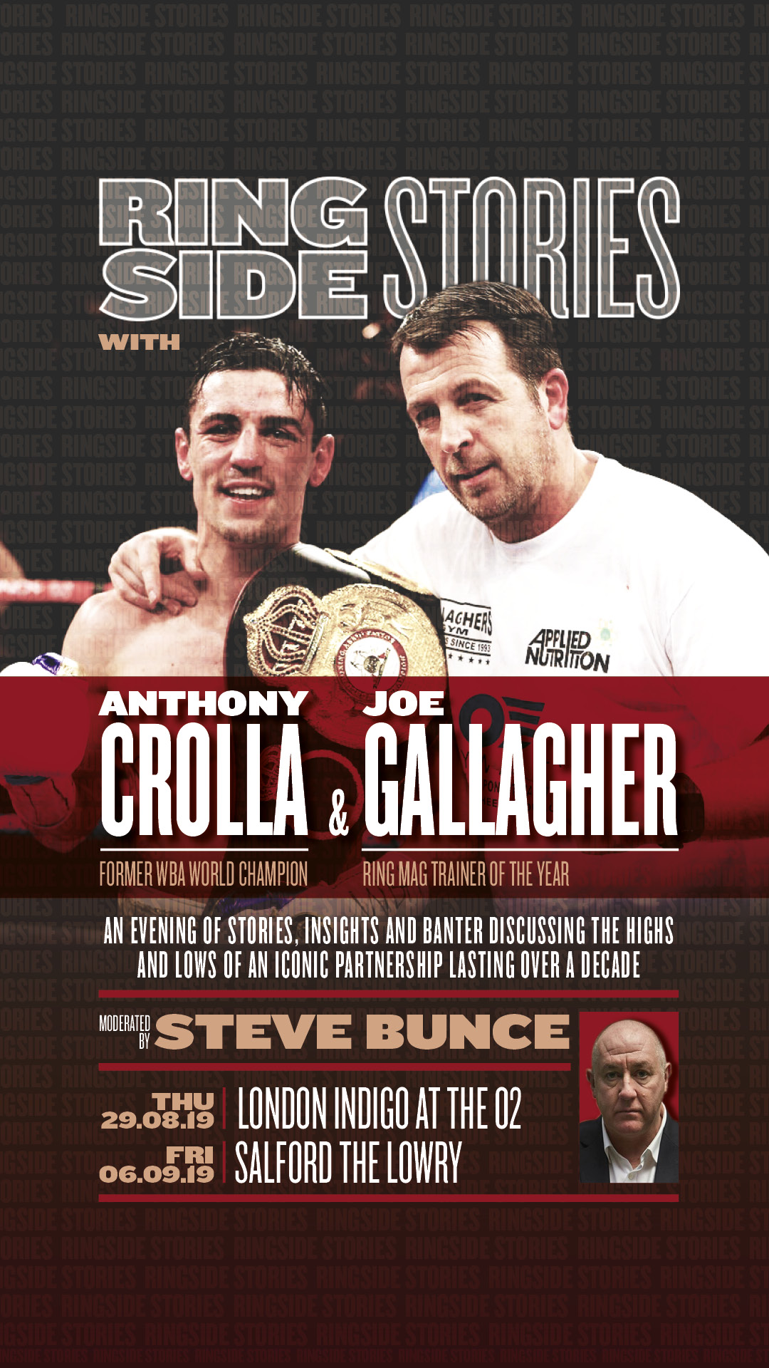 ANTHONY CROLLA, JOE GALLAGHER & STEVE BUNCE ANNOUNCE RINGSIDE STORIES TOUR OF THE UK