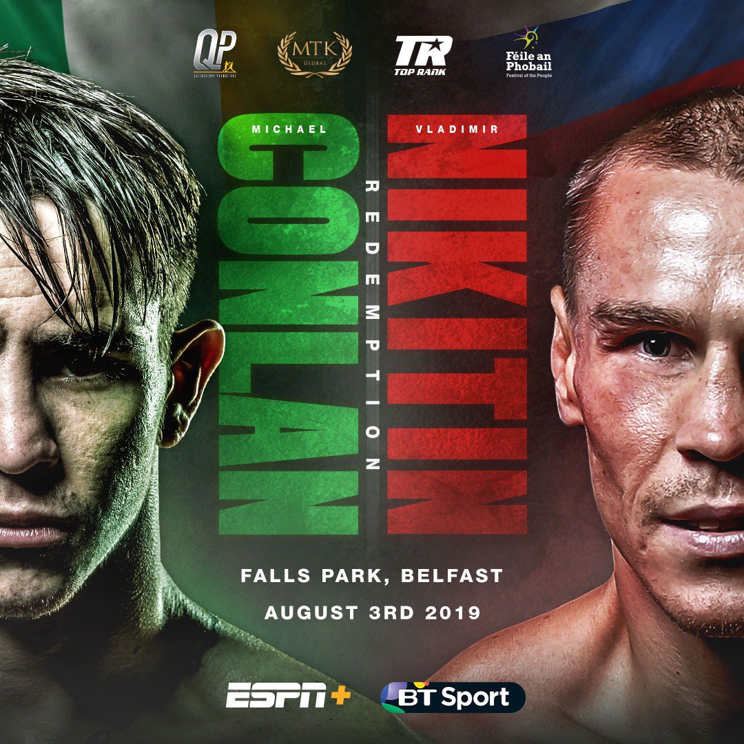 UK POWER DUO TO SHOWCASE FÉILE BONANZA MTK Global is delighted to announce a UK broadcast and promotional deal with Frank Warren of Queensberry Promotions and BT Sport for Michael Conlan vs. Vladimir Nikitin at Belfast’s Féile an Phobail on August 3. The agreement will bring the colossal #MTKFightNight to UK screens on BT Sport … Continue reading UK POWER DUO TO SHOWCASE FÉILE BONANZA