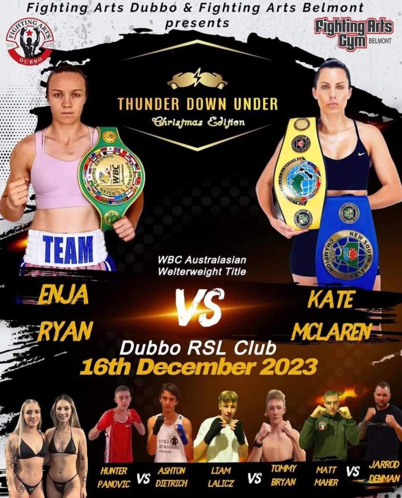 “I’m so excited. I’m big on the law of attraction and manifestation. I do a vision board every year, and I have managed to tick a load of things off that this year. I’ve won two belts this year. The New South Wales and Australasian welterweight titles and I have had my eye on the WBC title to finish the year off but nothing was aligning so I thought ok its not going to happen and I think I was going to take the rest of the year off. I did a camp over in LA, and it was amazing. What we were trying to do was do that camp and then fight in December, but we couldn’t align the opponent that we had our eye on. But the day before, I was looking at my vision board and thinking if only I could finish the year off with just one more fight. I went to the gym the next day and did all my training as normal, and my coach pulled me to one side and said December 16th, the WBC Australasian title, do you want it?” So I’ve literally gone straight into camp. I’m over the moon and ecstatic about this fight and the chance to win that title. If I can get my hands on that, it would really boost my ranking, and that will really help to fight for a world title. It’s a massive fight for me. It’s putting me on the right path and in the right direction, and I am so excited.”
