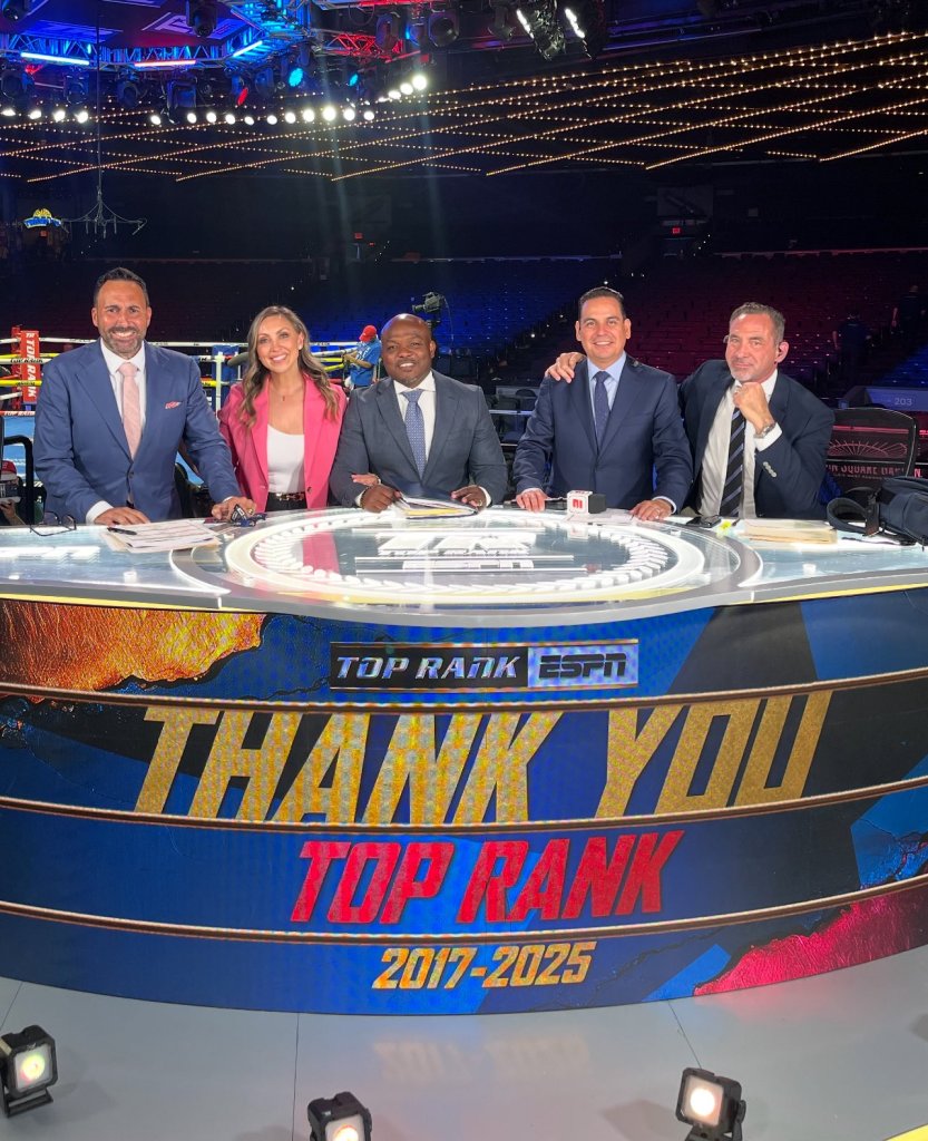 “I feel fortunate to know that I am still a great reporter, a great host, and I can do play-by-play, so even if I have to do a different role for now, I feel comfortable I can do any role on a broadcast team. If I have to do that temporarily, either with Top Rank or another broadcaster, I am confident that eventually I can get back to where I am best suited. Personally, my goal to have my own show hasn’t changed. I have long been asked when am I going to start a podcast, so even in a space where everyone has a podcast, I probably need to get that going.”