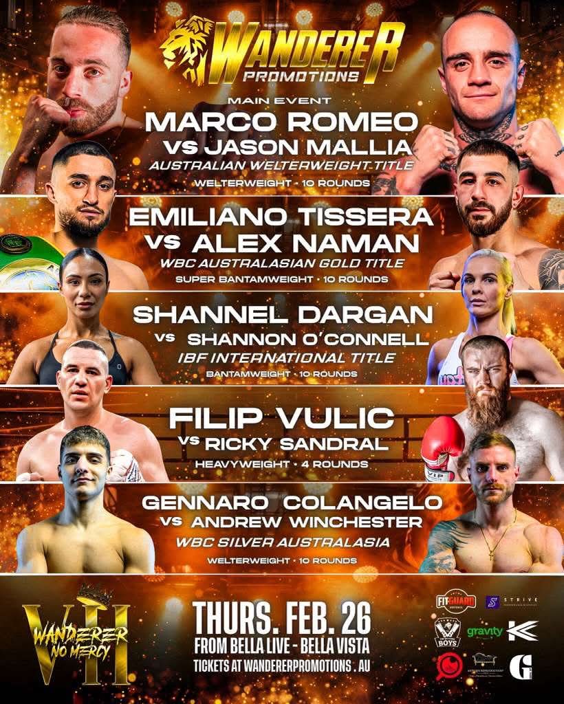There are big, ambitious plans for Wanderer Promotions, Bovino says. “I think we are going to take over Australian boxing and also evolve internationally in the future. There are a lot of promotions that are not satisfying boxers in Australia. They have a lot of holes in what they are doing. We are pretty much building our foundation, and our next card is absolutely huge. We have Shannon O’Connell fighting Shanell Dargan, a big female fight and some other good names on as well. We have only been doing this for two years, but we have really shot up in such a short amount of time. Our last show was completely sold out, and we had around 7,000 streams on the Triller broadcast.”