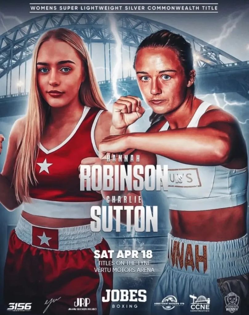 On the 18th April, Hannah Robinson gets her first taste of a title fight as a professional when she fights Charlie Sutton for the Commonwealth Silver super-lightweight bauble at the Vertu Motors Arena in Newcastle.