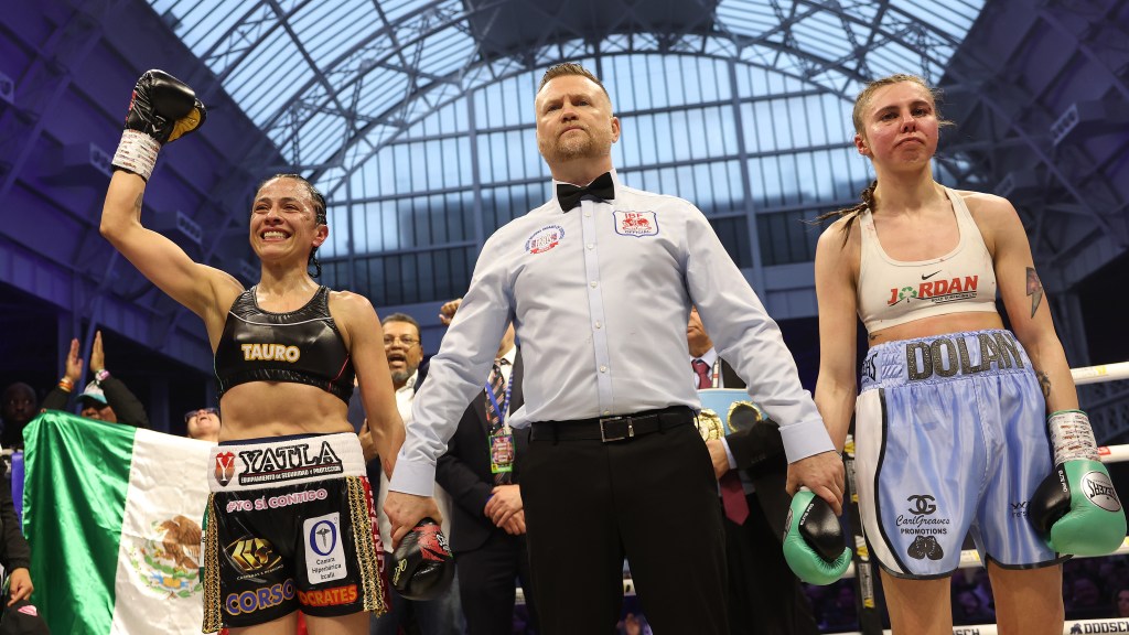 Dolan would have been better served trying to buy some much-needed time – to grab and hold. Instead, she tried to fight fire with fire. But the Mexican champion caught her again, and the British fighter tasted the canvas once more. The bell saved her.