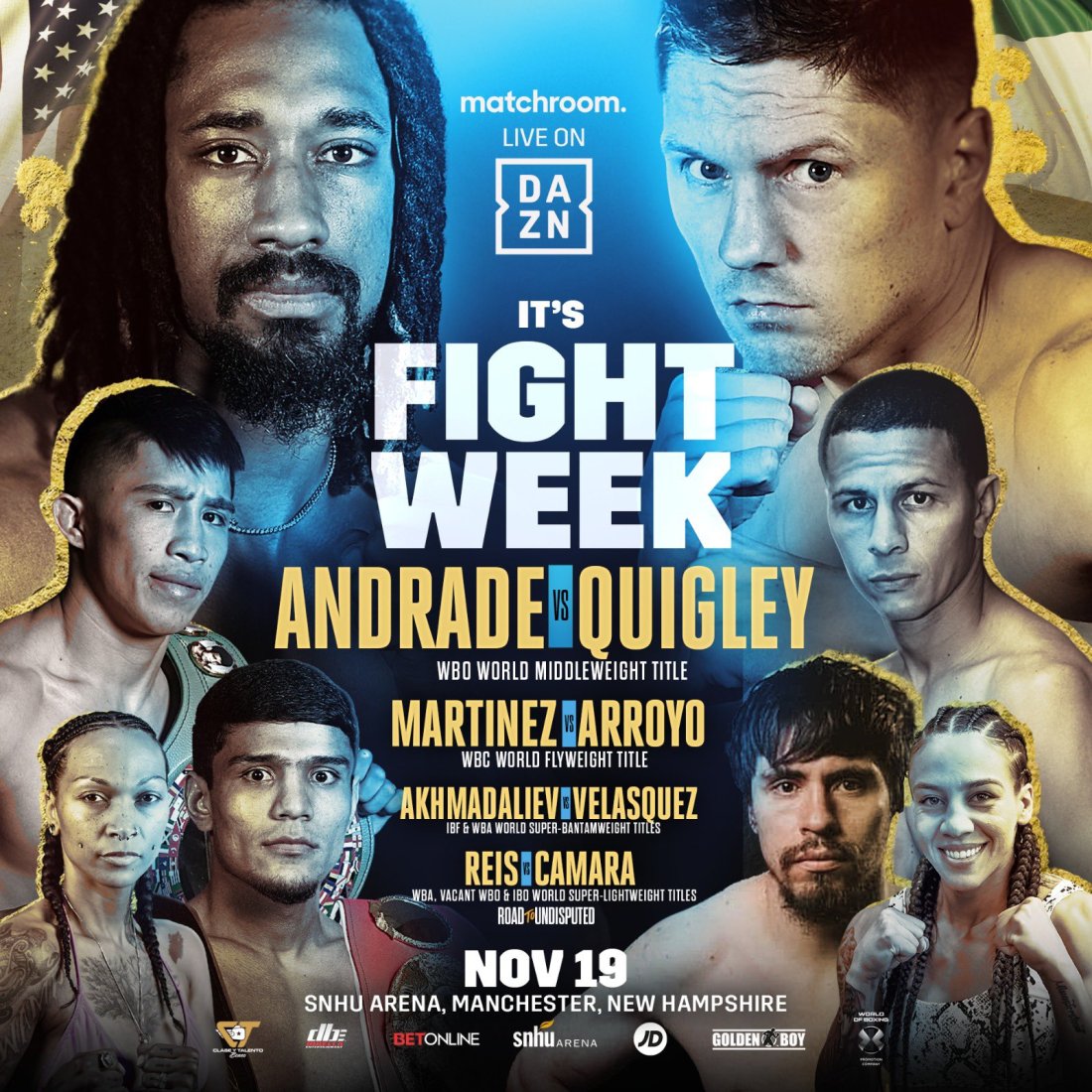 QUIGLEY RALLIES IRISH FANS AHEAD OF ANDRADE WORLD TITLE CLASH Irish star hits Boston ahead of New Hampshire showdown on Friday Jason Quigley believes he’ll have the crowd on his side as he expects his Irish fans to roar him to victory when he challenges Demetrius Andrade for the WBO World Middleweight title at the … Continue reading QUIGLEY RALLIES IRISH FANS AHEAD OF ANDRADE WORLD TITLE CLASH