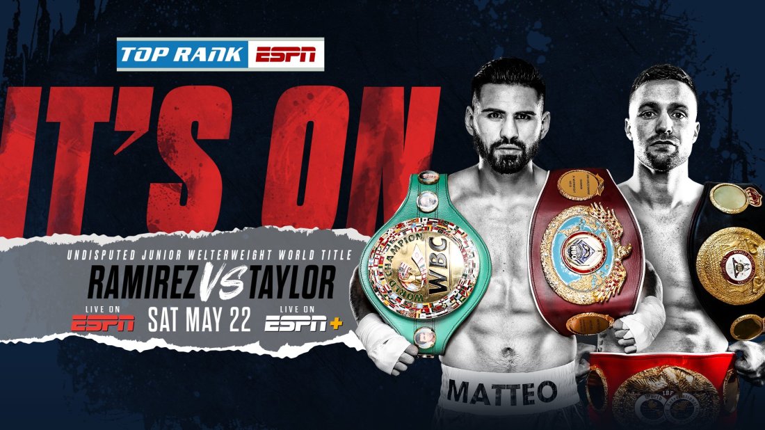 Jose Ramirez and Josh Taylor to Battle for Undisputed Junior Welterweight Crown May 22 LIVE on ESPN Two undefeated junior welterweight kings, one undisputed title. The stakes don’t get any higher. WBC/WBO champion Jose Ramirez, the pride of California’s Central Valley, will fight Scotland’s IBF/WBA champion Josh Taylor for the undisputed world championship Saturday, May … Continue reading Jose Ramirez and Josh Taylor to Battle for Undisputed Junior Welterweight Crown May 22 LIVE on ESPN