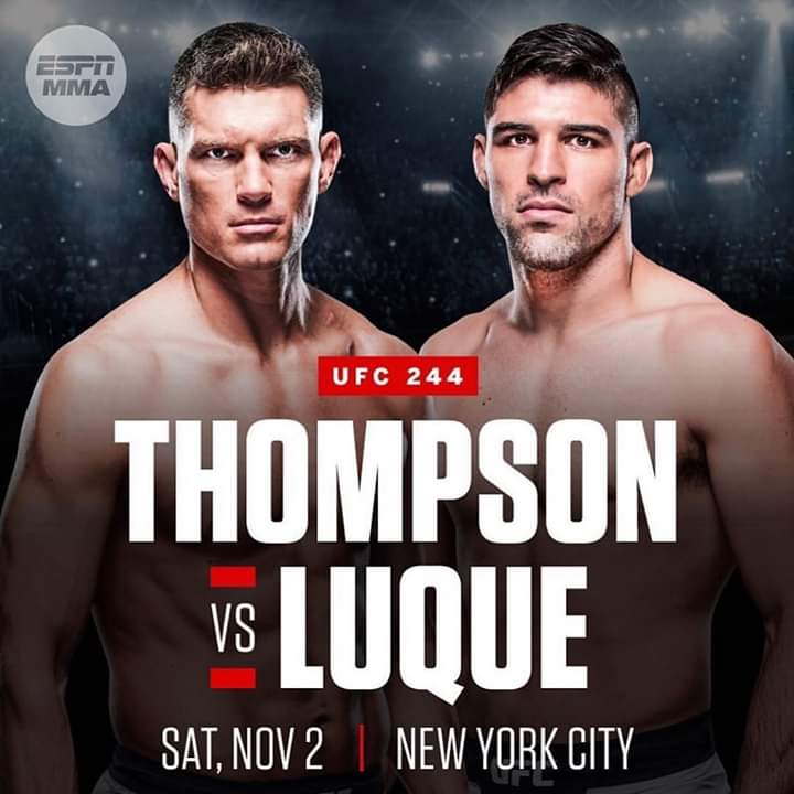 Stephen Thompson vs. Vicente Luque On Deck For UFC 244 In November Wonderboy' Thompson returns to MSG this November. Another exciting welterweight meeting is expected to take place on the stacked UFC 244 card at Madison Square Garden on November 2nd. Two-time title chaser Stephen 'Wonderboy' Thompson is set to clash with rising New Jersey … Continue reading Stephen Thompson vs. Vicente Luque On Deck For UFC 244 In November