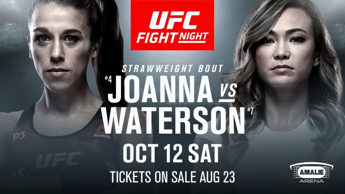 Joanna Jedrzejczyk vs Michelle Waterson Set For October By Ross Markey A strawweight headliner between former champion Joanna Jedrzejczyk and surging contender Michelle Waterson has officially been announced for UFC Fight Night Tampa on October 12th. from the Amalie Arena. In somewhat of a title eliminator, dominant former division best Jędrzejczyk returns to 115 pounds, … Continue reading Joanna Jedrzejczyk vs Michelle Waterson Set For October