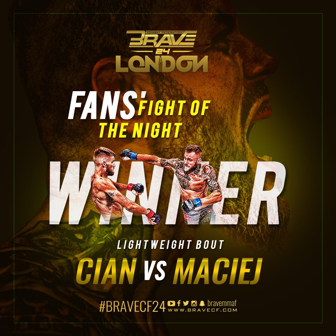 "Magic Man" vs "The Warrior" Elected Fight of the Night at BRAVE 24 Maciej Gierszewski's shock KO victory over Cian Cowley in the co-main event of BRAVE 24: London left BRAVE Nation around the world wanting more, and the bout was elected by the fans as the Fight of the Night for the groundbreaking show. … Continue reading “Magic Man” vs “The Warrior” Elected Fight of the Night at BRAVE 24