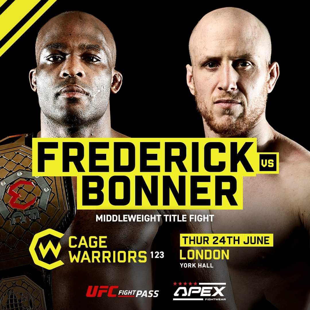Nathias Frederick To Defend Cage Warriors Middleweight Title Against Matthew Bonner at CW 123 Middleweight champion Nathias Frederick will defend his title against top contender Mathew Bonner in the main event of CW 123. Going ahead on 24th June, CW 123 is the first night of Cage Warriors upcoming trilogy which will be held at … Continue reading Nathias Frederick To Defend Cage Warriors Middleweight Title Against Matthew Bonner at CW 123