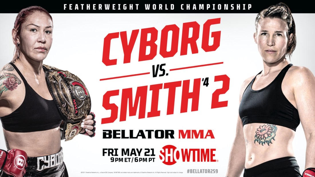 BELLATOR MMA™ CONFIRMS FULL FIGHT CARD FOR BELLATOR 259: CRIS CYBORG SET TO DEFEND WOMEN’S FEATHERWEIGHT WORLD CHAMPIONSHIP AGAINST LESLIE SMITH IN A HIGHLY ANTICIPATED REMATCH BELLATOR MMA has confirmed the full fight card for BELLATOR MMA 259: Cyborg vs. Smith 2 this Friday, May 21 at Mohegan Sun Arena. The event caps off an … Continue reading BELLATOR MMA™ CONFIRMS FULL FIGHT CARD FOR BELLATOR 259