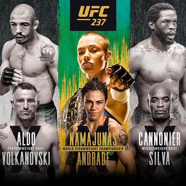 UFC 237 Preview & Predictions By Alex Conway The UFC takes it’s show to Brazil this weekend. The main event will feature strawweight champion Rose Namajunas against top contender and Brazilian foe Jessica Andrade. The co-main event features Anderson Silva against Jared Cannonier and then the feature bout will showcase a featherweight showdown between Jose … Continue reading UFC 237 Preview & Predictions