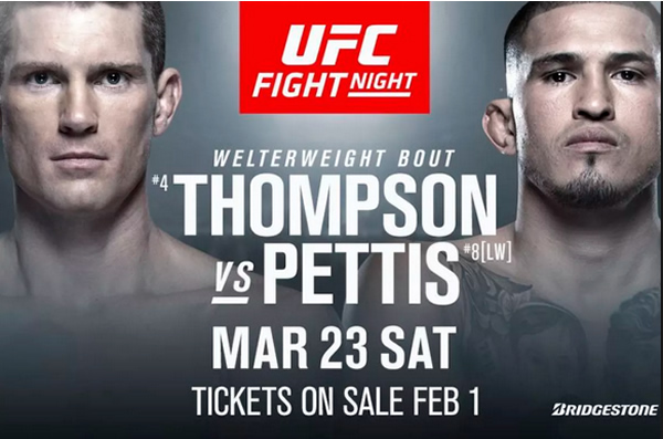 UFC Nashville: Thompson vs Pettis Preview & Prediction By Ross Markey The UFC make the trip to Nashville, Tennessee this weekend ahead of a mouth-watering striking clash between two-time title challenger Stephen 'Wonderboy' Thompson and former WEC and UFC lightweight gold holder Anthony 'Showtime' Pettis, who makes his UFC welterweight division bow in the main … Continue reading UFC Nashville: Thompson vs Pettis Preview & Prediction