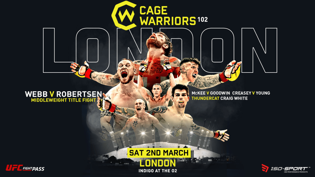 Cage Warriors 102: Full Fight Card This Saturday March 2nd, Cage Warriors return to the Indigo at the O2 Arena with one of their strongest London cards ever. Topping the bill is a middleweight title fight between London fan favourite James Webb and Norway’s Thomas Robertsen. With 4 finish wins in his last 4 outings, … Continue reading Cage Warriors 102: Full Fight Card