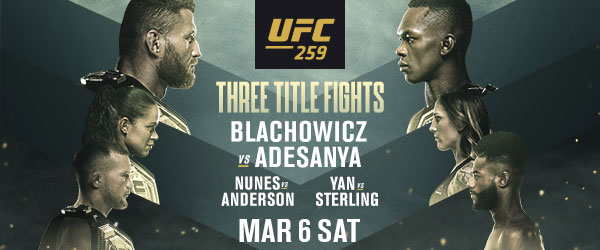 UFC 259 Preview & Predictions: Blachowicz vs Adesanya By Cathal Geeney Jan Blachowicz will defend his UFC light-heavyweight title for the first time against the current middleweight champion Israel Adesanya, in what will be the last of three title fights on the night. Adesanya has looked the complete package in his UFC career to date. … Continue reading UFC 259 Preview & Predictions: Blachowicz vs Adesanya