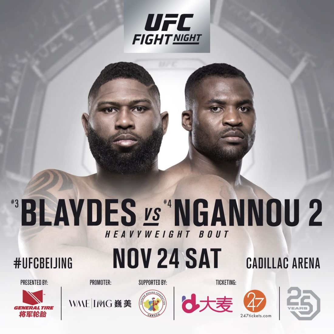 UFC: A Little Look Ahead By Ben Jessop Fight Night 141 - Main Event The UFC will be hosting fight night 141 in Beijing, China for the first time on the 25th November 18 at the Cadillac Arena and this will be the home to the much-anticipated rematch for Curtis ‘Razor’ Blaydes and Francis ‘The … Continue reading UFC: A Little Look Ahead