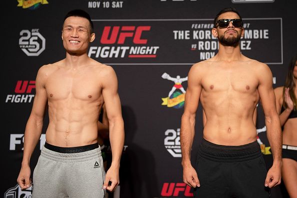 UFC Fight Night Denver: FightPost Team Predictions MAIN CARD Chan Sung Jung (146) vs Yair Rodriguez (145.5) Donald Cerrone (170) vs Mike Perry (170.5) Germaine de Randamie (136) vs Raquel Pennington (138)* Beneil Dariush (155.5) vs Thiago Moises (156) Maycee Barber (116.5) vs Hannah Cifers (115.5) Luis Pena (155) vs Mike Trizano (155 The FightPost … Continue reading UFC Fight Night Denver: FightPost Team Predictions