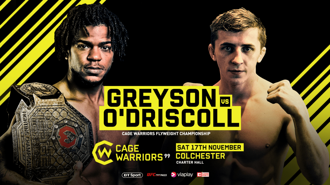 CW99 Full Fight Card and Broadcast Details Fight week is here! Cage Warriors 99 goes down at the Colchester Charter Hall this Saturday night, headlined by a flyweight title fight between reigning Champion Nathan Greyson and Blaine O’Driscoll. Nathan Greyson’s spectacular knockout win to win the belt at CW92 sent shockwaves through the European flyweight … Continue reading CW99 Full Fight Card and Broadcast Details