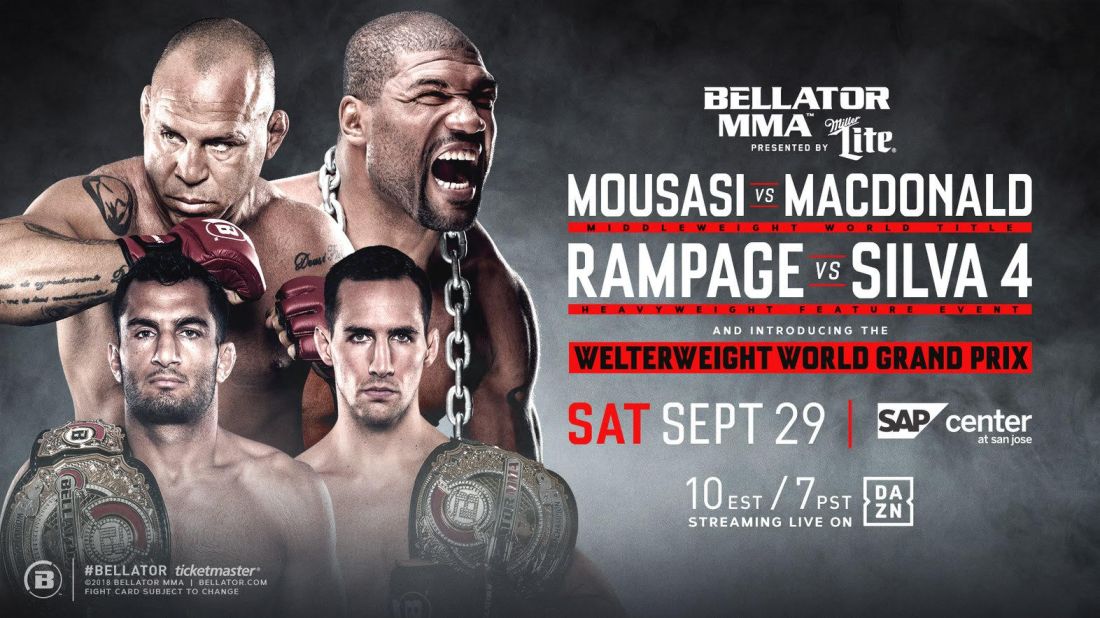BELLATOR 206: MOUSASI vs. MACDONALD RESULTS Bellator 206: Mousasi vs. MacDonald Main Card Results: Gegard Mousasi (44-6-2) defeated Rory MacDonald (20-5) via TKO (punches) at 3:23 of round two Quinton “Rampage” Jackson (38-13) defeated Wanderlei Silva (35-14) via TKO (punches) at 4:32 of round two Douglas Lima (30-7) defeated Andrey Koreshkov (21-3) via technical submission … Continue reading BELLATOR 206: MOUSASI vs. MACDONALD RESULTS