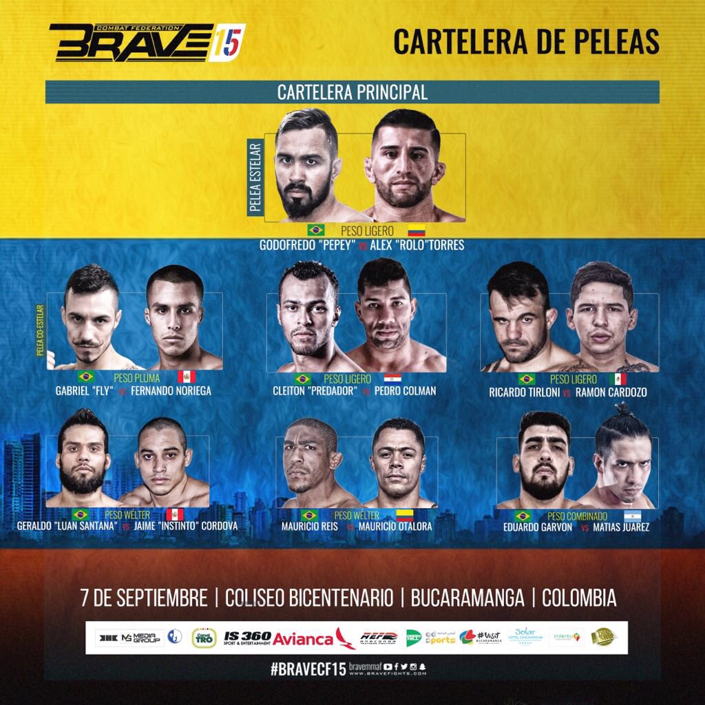Brave 15 Main Card Breakdown Brave 15 will be held at the Coliseo Bicentenario, in Bucaramanga, Colombia, on September 7th, and will feature some of the greatest Latin America talent in MMA today. The main event features the lightweight debut of TUF Brazil runner-up Godofredo "Pepey", who takes on Alex "Rolo" Torres. Also in action … Continue reading Brave 15 Main Card Breakdown