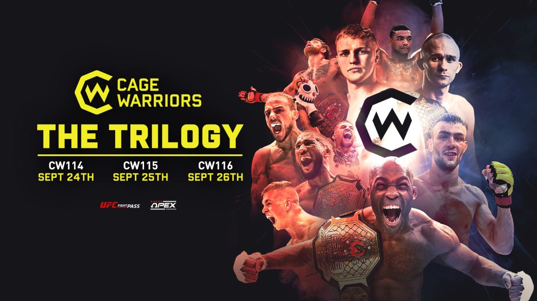 THE TRILOGY: Full Fight Cards The wait is over. Fight week is here, and Cage Warriors is back! This week, Cage Warriors 114, 115 and 116 will take place across three consecutive nights on the 24th, 25th and 26th September in THE TRILOGY series. The triple-header will feature 5 world title fights and over 50 … Continue reading THE TRILOGY: Full Fight Cards