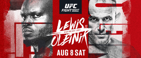 HARD-HITTING HEAVYWEIGHT FINISHERS (#4) DERRICK LEWIS AND (#11) ALEKSEI OLEINIK COLLIDE AT UFC® APEX UFC® continues its run of August events at UFC APEX, headlined by a battle of heavyweight contenders, as No. 4 ranked Derrick Lewis squares off with No. 11 Aleksei Oleinik. The co-main event will feature No. 11 ranked middleweight contender Omari Akhmedov, who aims to take out … Continue reading HARD-HITTING HEAVYWEIGHT FINISHERS (#4) DERRICK LEWIS AND (#11) ALEKSEI OLEINIK COLLIDE AT UFC® APEX