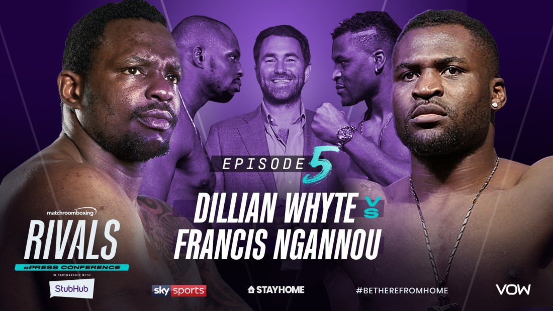 WHYTE AND NGANNOU MEET IN SPECIAL EPRESS CONFERENCE TOMORROW! Boxing and UFC Heavyweights face-off in Rivals episode 5 Interim WBC Heavyweight World Champion Dillian Whyte and Heavyweight UFC star Francis Ngannou will come together for a special ePress conference at 7pm (BST) tomorrow (Saturday May 30) on Matchroom Boxing’s YouTube channel. In partnership with StubHub, … Continue reading WHYTE AND NGANNOU MEET IN SPECIAL EPRESS CONFERENCE TOMORROW!