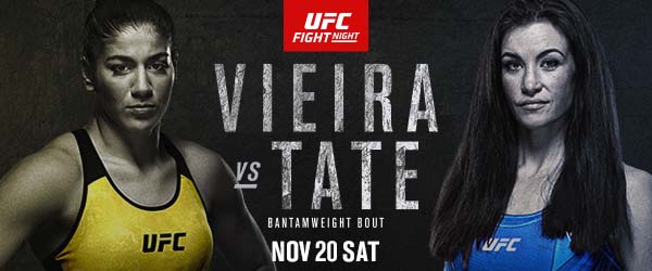 WOMEN’S BANTAMWEIGHT SHOWCASE BETWEEN (#7) KETLEN VIEIRA AND (#8) MIESHA TATE HEADLINES AT UFC® APEX IN LAS VEGAS UFC® returns to UFC APEX with a showcase matchup in the women’s bantamweight division as No. 7 ranked contender Ketlen Vieira takes on No. 8 Miesha Tate. In the co-main event, welterweight grappling specialists lock horns as … Continue reading WOMEN’S BANTAMWEIGHT SHOWCASE BETWEEN (#7) KETLEN VIEIRA AND (#8) MIESHA TATE HEADLINES AT UFC® APEX IN LAS VEGAS