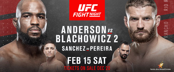TOP LIGHT HEAVYWEIGHT CONTENDERS (#5) COREY ANDERSON AND (#6) JAN BLACHOWICZ REMATCH IN RIO RANCHO UFC® is set to make its debut at Santa Ana Star Center in Rio Rancho, N.M. with a critical rematch in the light heavyweight division, No. 5 ranked Corey Anderson and No. 6 Jan Blachowicz each look to secure the … Continue reading TOP LIGHT HEAVYWEIGHT CONTENDERS (#5) COREY ANDERSON AND (#6) JAN BLACHOWICZ REMATCH IN RIO RANCHO