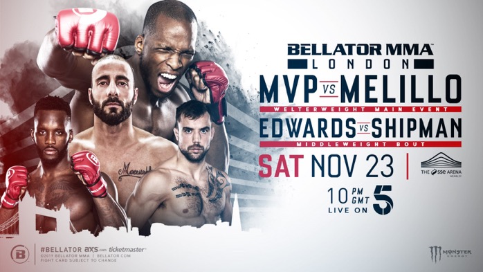 BELLATOR LONDON FULL CARD AND BROADCAST DETAILS CONFIRMED Bellator London: MVP vs. Melillo airs live at 10 p.m. GMT on Channel 5 in the UK This Saturday, Nov. 23, Bellator MMA will return to the The SSE Arena, Wembley for the sixth and final edition of the Bellator European Fight Series with none other than … Continue reading BELLATOR LONDON FULL CARD AND BROADCAST DETAILS CONFIRMED