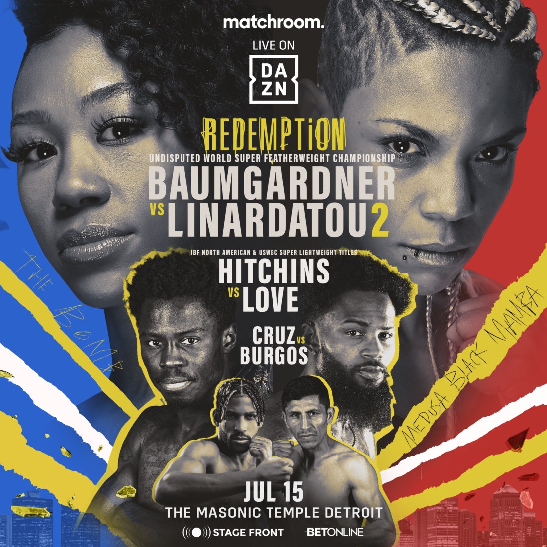BAUMGARDNER DEFENDS UNDISPUTED CROWN AGAINST LINARDATOU IN DETROIT ON JULY 15 ‘The Bomb’ seeks revenge in rematch with Greek foe – Hitchins and Love clash – Andy Cruz makes pro debut Alycia Baumgardner will defend her undisputed World Super-Featherweight title against Christina Linardatou at The Masonic Temple Detroit in Detroit, Michigan on Saturday July 15, live worldwide on … Continue reading BAUMGARDNER DEFENDS UNDISPUTED CROWN AGAINST LINARDATOU IN DETROIT ON JULY 15