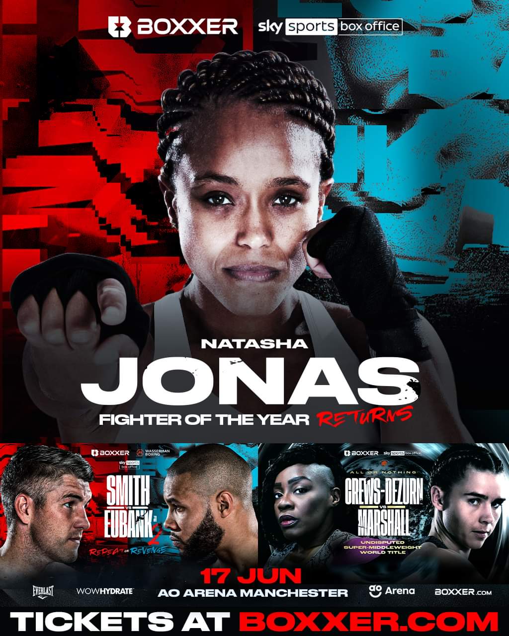 FIGHTER OF THE YEAR NATASHA JONAS JOINS JUNE 17 BOX OFFICE NIGHT IN MANCHESTER ALONG WITH HEFFRON v CHELLI FOR BRITISH TITLE -2022 Fighter of the Year Natasha Jonas set to defend her unified WBC, WBO, IBF and Ring Magazine Super-Welterweight titles -Mark Heffron vs Zak Chelli for the British Super-Middleweight Championship -Liam Smith vs … Continue reading FIGHTER OF THE YEAR NATASHA JONAS JOINS JUNE 17 BOX OFFICE NIGHT IN MANCHESTER ALONG WITH HEFFRON v CHELLI FOR BRITISH TITLE