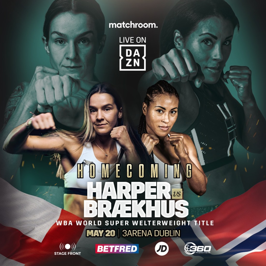 HARPER MAKES MAIDEN WBA 154LBS WORLD TITLE DEFENCE AGAINST FORMER POUND-FOR-POUND NO.1 BRAEKHUS AT DUBLIN’S 3ARENA ON MAY 20 ‘Belter’ clashes with boxing’s ‘First Lady’ on historic Taylor vs. Cameron undercard Terri Harper will defend her WBA Super-Welterweight World Title against former world pound-for-pound No.1 Cecilia Braekhus on the undercard of Katie Taylor’s historic homecoming … Continue reading HARPER MAKES MAIDEN WBA 154LBS WORLD TITLE DEFENCE AGAINST FORMER POUND-FOR-POUND NO.1 BRAEKHUS AT DUBLIN’S 3ARENA ON MAY 20