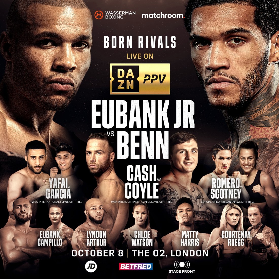 MATCHROOM AND WASSERMAN STARS MAKE UP EUBANK JR. VS. BENN UNDERCARD All-star cast supports generational blockbuster in London on Oct 8 Matchroom and Wasserman stars make up the undercard when ‘Born Rivals’ Chris Eubank Jr. and Conor Benn clash on a sold-out blockbuster night of action at The O2 in London on Saturday October 8, exclusively live on DAZN around … Continue reading MATCHROOM AND WASSERMAN STARS MAKE UP EUBANK JR. VS. BENN UNDERCARD