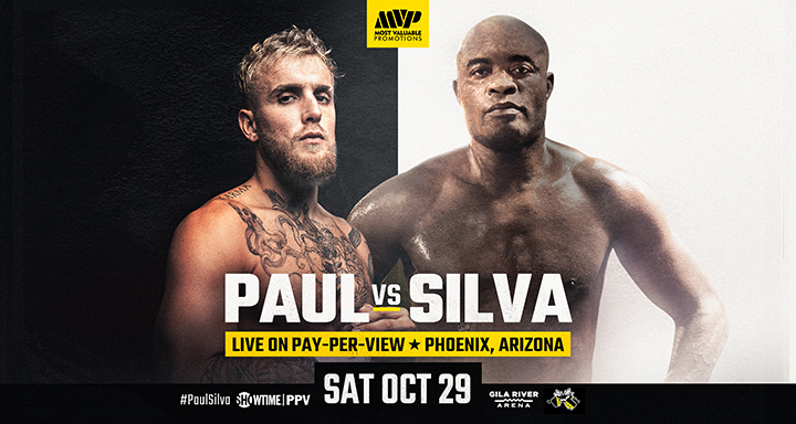JAKE PAUL TO FACE UFC GREAT AND PROFESSIONAL BOXER ANDERSON SILVA IN GLOBAL MATCHUP LIVE ON SHOWTIME PPV® Most Valuable Promotions (MVP) and SHOWTIME SPORTS® today announced that international superstar and serial risk-taker Jake “The Problem Child” Paul will face the biggest challenge of his career when he takes on UFC legend and professional boxer Anderson “The Spider” Silva at Gila River Arena in Phoenix, Ariz., … Continue reading JAKE PAUL TO FACE UFC GREAT AND PROFESSIONAL BOXER ANDERSON SILVA IN GLOBAL MATCHUP LIVE ON SHOWTIME PPV®