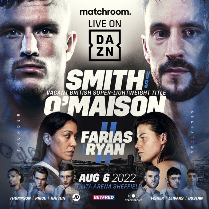 SMITH LANDS BRITISH TITLE SHOT AGAINST O’MAISON IN SHEFFIELD Super-Lightweight star headlines August 6 card in home cityDalton Smith will face Sam O’maison for the vacant British Super-Lightweight Title at the Utilita Arena Sheffield on Saturday August 6, live worldwide on DAZN (excluding Australia and New Zealand). Smith (11-0, 9 KOs), one of the hottest prospects in world boxing, claimed his … Continue reading SMITH LANDS BRITISH TITLE SHOT AGAINST O’MAISON IN SHEFFIELD