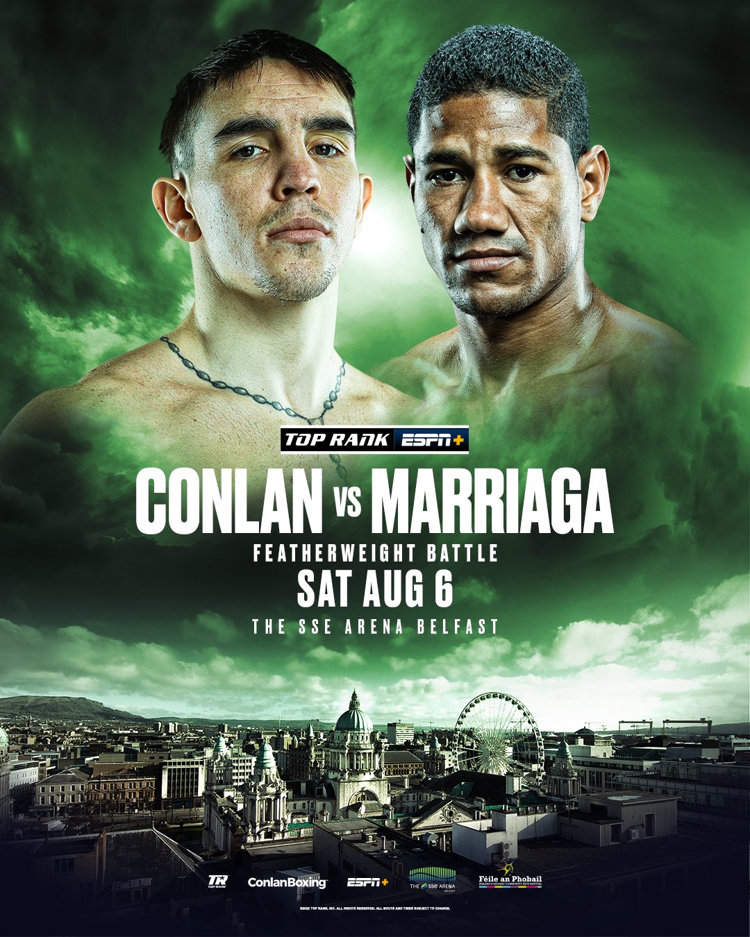Return of The Mick: Featherweight Contender Michael Conlan to Face Miguel Marriaga in Belfast Homecoming August 6 LIVE on ESPN+ Conlan-Marriaga will take place at The SSE Arena as part of the annual Féile an Phobail festival Tickets go on sale Friday, June 10 Irish star Michael “Mick” Conlan is primed to make another charge at a … Continue reading Return of The Mick: Featherweight Contender Michael Conlan to Face Miguel Marriaga in Belfast Homecoming August 6 LIVE on ESPN+