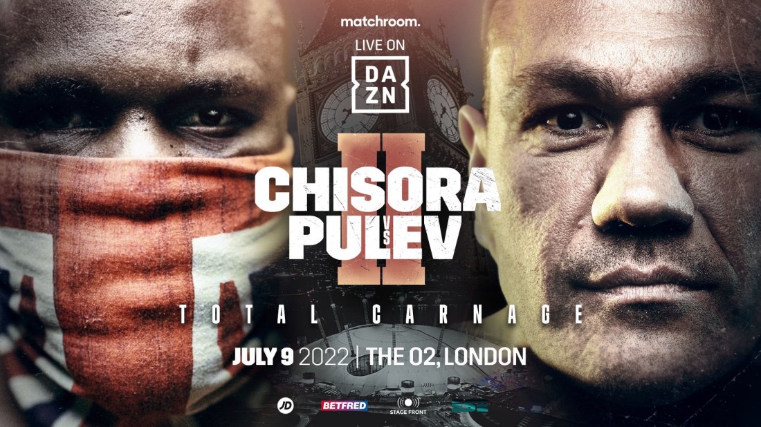 CHISORA AND PULEV REMATCH AT THE O2 ON JULY 9 Former World Title challengers collide in LondonDerek Chisora and Kubrat Pulev will meet for a second time at The O2 in London on Saturday July 9, live worldwide on DAZN (excluding Australia, New Zealand and France), over six years on from their 12-round battle for the European Heavyweight Title at … Continue reading CHISORA AND PULEV REMATCH AT THE O2 ON JULY 9