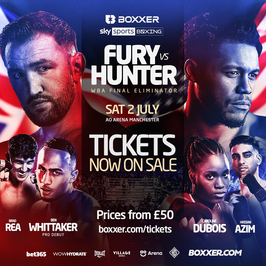 BOXXER PRODIGIES DUBOIS, AZIM AND REA TO LIGHT UP AO ARENA MANCHESTER ON 2 JULY Unbeaten Prospects Join Action Packed Card Featuring Whittaker Pro Debut And Crucial Heavyweight Collision Between Fury And Hunter Fast emerging BOXXER talents Caroline Dubois, Hassan Azim and Brad Rea will showcase their talents on the undercard of the crunch heavyweight … Continue reading BOXXER PRODIGIES DUBOIS, AZIM AND REA TO LIGHT UP AO ARENA MANCHESTER ON 2 JULY