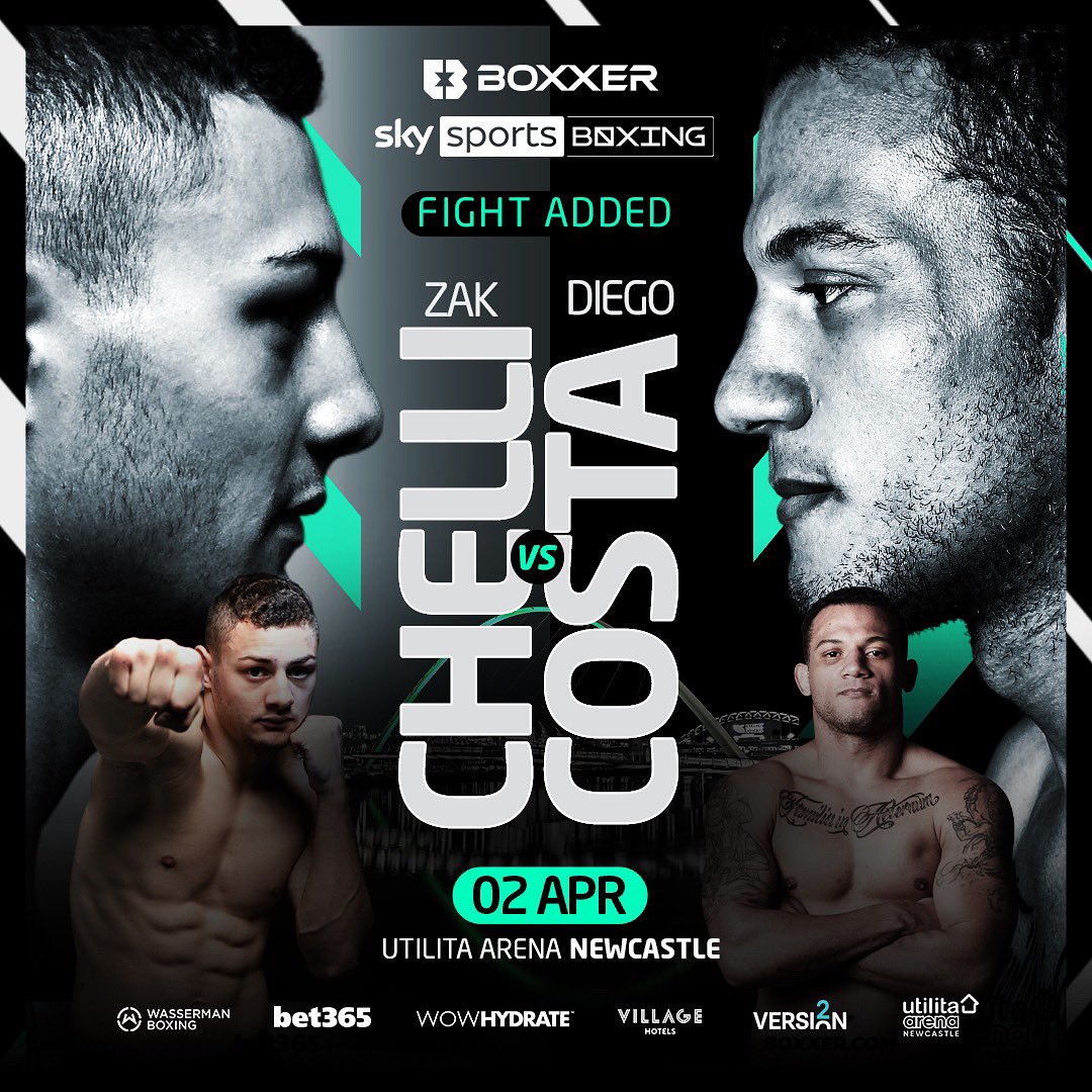 CHELLI TAKES ON BRAZILIAN BANGER COSTA IN NEWCASTLE THIS SATURDAY NIGHT Sizzling super-middleweight showdown sees Chelli looking to claim Costa's unbeaten record Fulham’s Zak Chelli will face the undefeated Brazilian Diego ‘Dynamite’ Costa in an exciting super-middleweight showdown on the undercard of Savannah Marshall’s WBO World Middleweight Title defence against Femke Hermans this Saturday night … Continue reading CHELLI TAKES ON BRAZILIAN BANGER COSTA IN NEWCASTLE THIS SATURDAY NIGHT