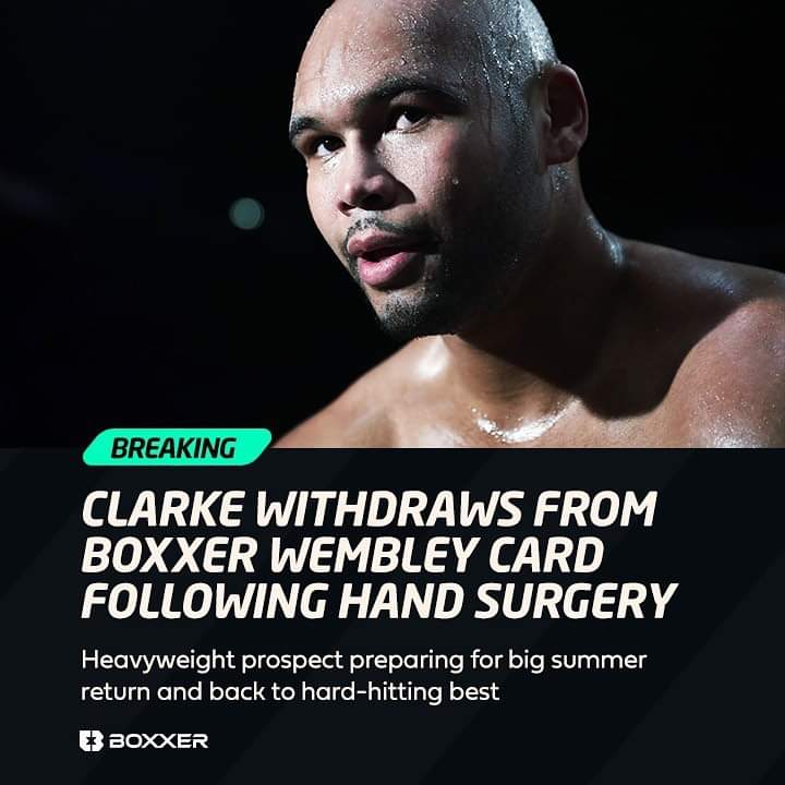 FRAZER CLARKE WITHDRAWS FROM BOXXER WEMBLEY CARD FOLLOWING HAND SURGERY