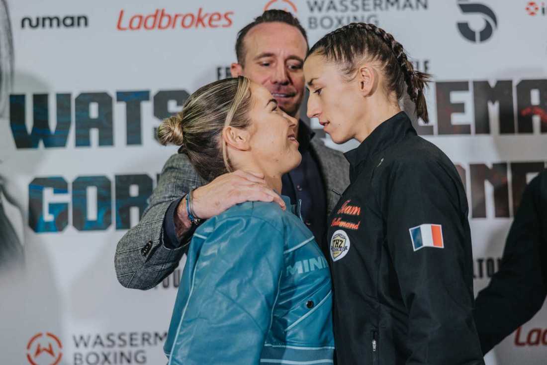 WATSON AND LALLEMAND SHARE HEATED FACE OFF AHEAD OF EURO FIGHT, LIVE ON CHANNEL 5 European flyweight title clash brought to you by Wasserman Boxing in association with Ladbrokes, Numan, and Infinitum Entertainment Chloe Watson and Justine Lallemand had to be pulled apart when they faced-off at today's press conference, ahead of their title clash live … Continue reading WATSON AND LALLEMAND SHARE HEATED FACE OFF AHEAD OF EURO FIGHT, LIVE ON CHANNEL 5