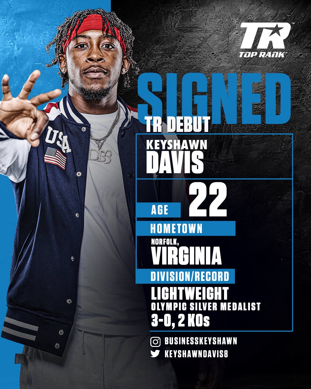Silver Streak: U.S. Olympic Silver Medalists Keyshawn Davis & Richard Torrez Jr. Sign Long-Term Promotional Contracts with Top Rank From Tokyo to Top Rank, two recent U.S. Olympic silver medalists have found their professional home. Lightweight sensation Keyshawn “The Businessman” Davis and heavyweight Richard Torrez Jr., two of Team USA’s three silver medalists in Tokyo, … Continue reading Silver Streak: U.S. Olympic Silver Medalists Keyshawn Davis & Richard Torrez Jr. Sign Long-Term Promotional Contracts with Top Rank