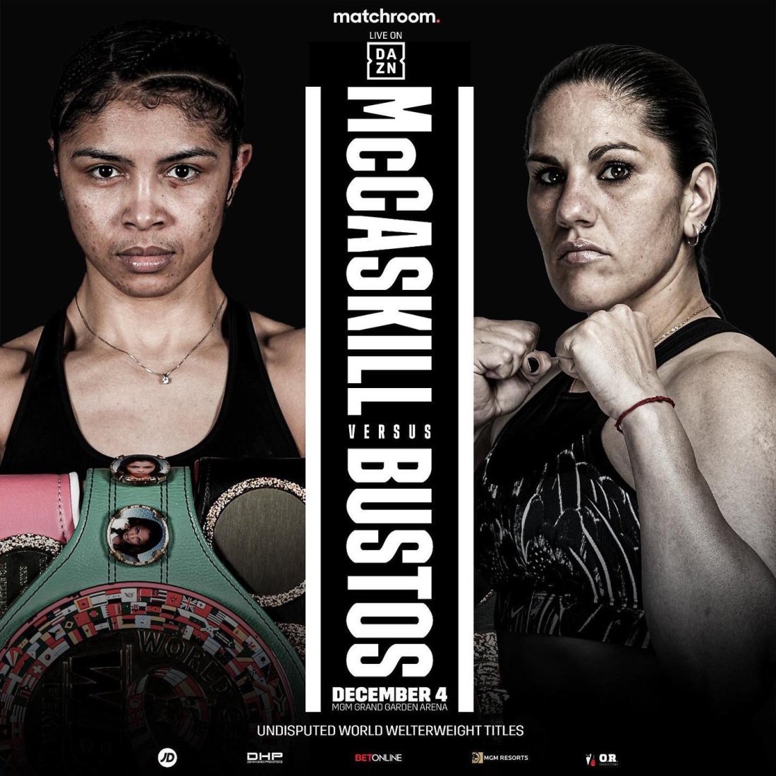 MCCASKILL PENS MATCHROOM DEAL AND DEFENDS UNDISPUTED VS. BUSTOS IN VEGAS Undisputed Welterweight ruler signs with Hearn and leads stacked undercard on Dec 4 Jessica McCaskill has signed a long-term promotional deal with Matchroom Boxing and Eddie Hearn – and will defend her undisputed Welterweight title against Victoria Bustos at the MGM Grand Garden Arena … Continue reading MCCASKILL PENS MATCHROOM DEAL AND DEFENDS UNDISPUTED VS. BUSTOS IN VEGAS