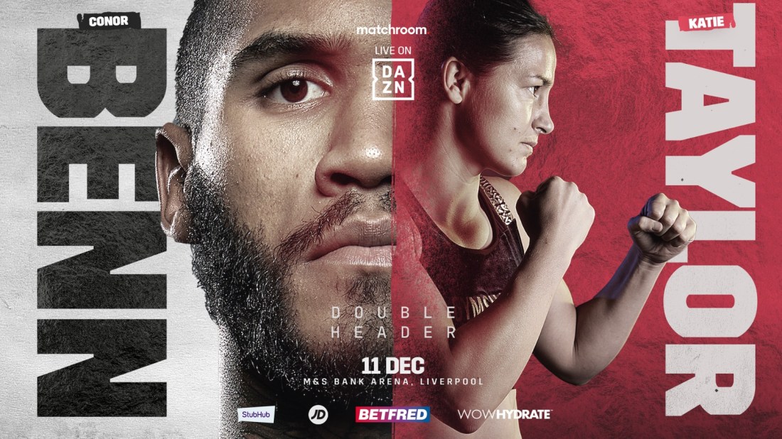 CONOR BENN AND KATIE TAYLOR HEADLINE DECEMBER 11 LIVERPOOL FIGHT NIGHT Welterweight star and Undisputed Lightweight World Champion return on DAZN Matchroom Boxing will return to the M&S Bank Arena in Liverpool for another huge night of boxing on Saturday December 11 co-headlined by Welterweight star Conor Benn and Undisputed Lightweight World Champion Katie Taylor, … Continue reading CONOR BENN AND KATIE TAYLOR HEADLINE DECEMBER 11 LIVERPOOL FIGHT NIGHT
