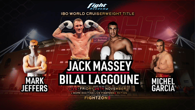 JACK MASSEY ON TRACK FOR WORLD TITLE Fight Academy’s Jack Massey gets the chance of a lifetime on November 26 when he faces Bilal Laggoune for the International Boxing Organisation (IBO) World Cruiserweight Title, at Bolton White’s Hotel – live on Fightzone. This is a massive opportunity for both men. The IBO version of the world title has previously been … Continue reading JACK MASSEY ON TRACK FOR WORLD TITLE