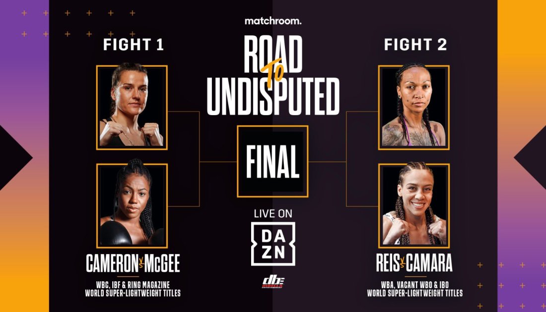 THE ROAD TO UNDISPUTED: WOMEN'S 140LBS CROWN UP FOR GRABS IN FOUR WAY SHOWDOWN Chantelle Cameron will fight Mary McGee for the IBF, WBC and Ring Magazine World TitlesKali Reis will fight Jessica Camara for the WBA, WBO and IBO World Titles Matchroom Boxing, in partnership with DiBella Entertainment, announce today that the Undisputed Super-Lightweight … Continue reading THE ROAD TO UNDISPUTED: WOMEN’S 140LBS CROWN UP FOR GRABS IN FOUR WAY SHOWDOWN