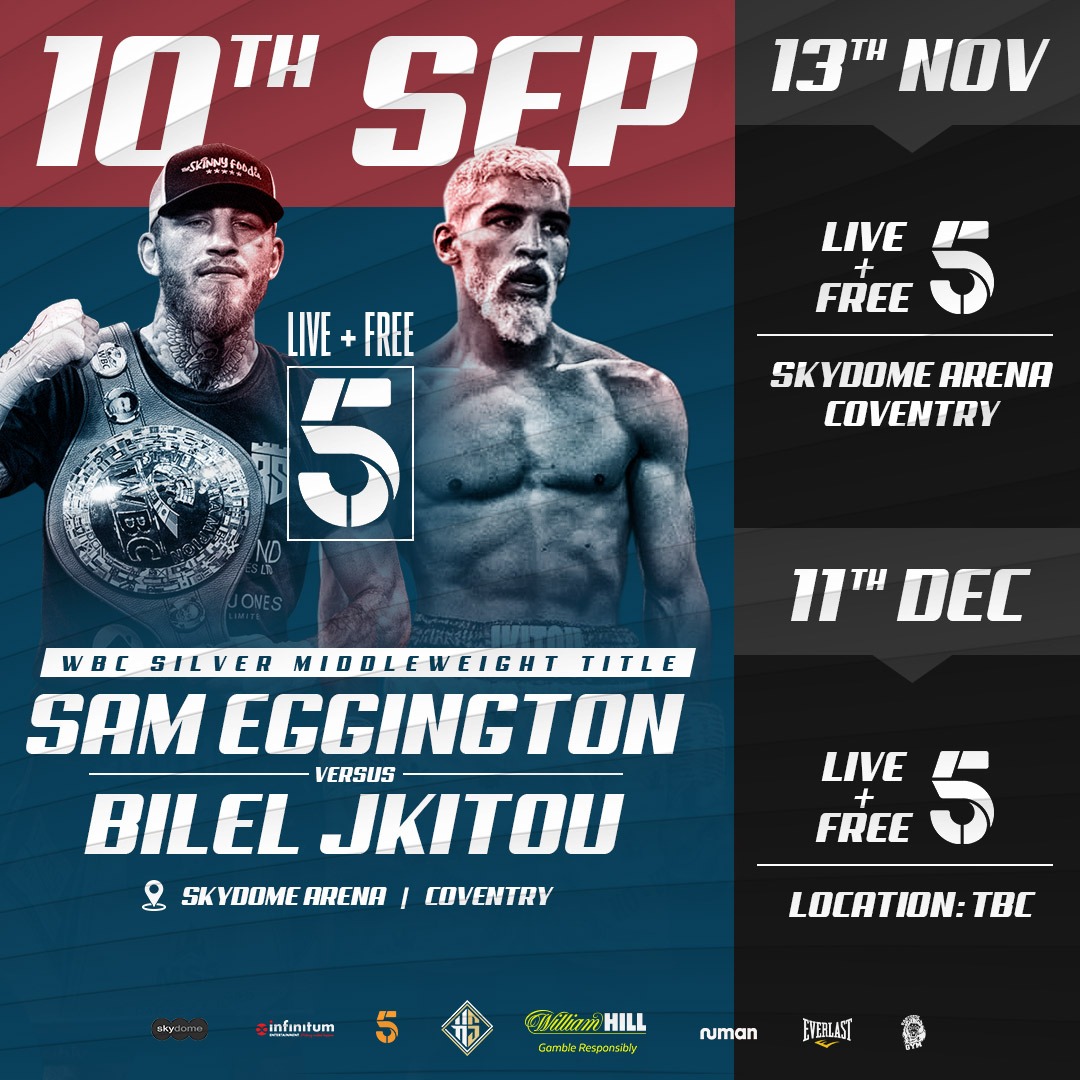 EGGINGTON READY FOR WAR AGAINST UNDEFEATED FRENCH ACE JKITOU AT COVENTRY SKYDOME ARENA Birmingham hero defends WBC Silver Middleweight title with Jkitou threatening to KO the Savage Birmingham warrior Sam Eggington is ready to go to war with undefeated French ace Bilel Jkitou when they collide on Friday 10th September at the Coventry Skydome Arena, … Continue reading EGGINGTON READY FOR WAR AGAINST UNDEFEATED FRENCH ACE JKITOU AT COVENTRY SKYDOME ARENA